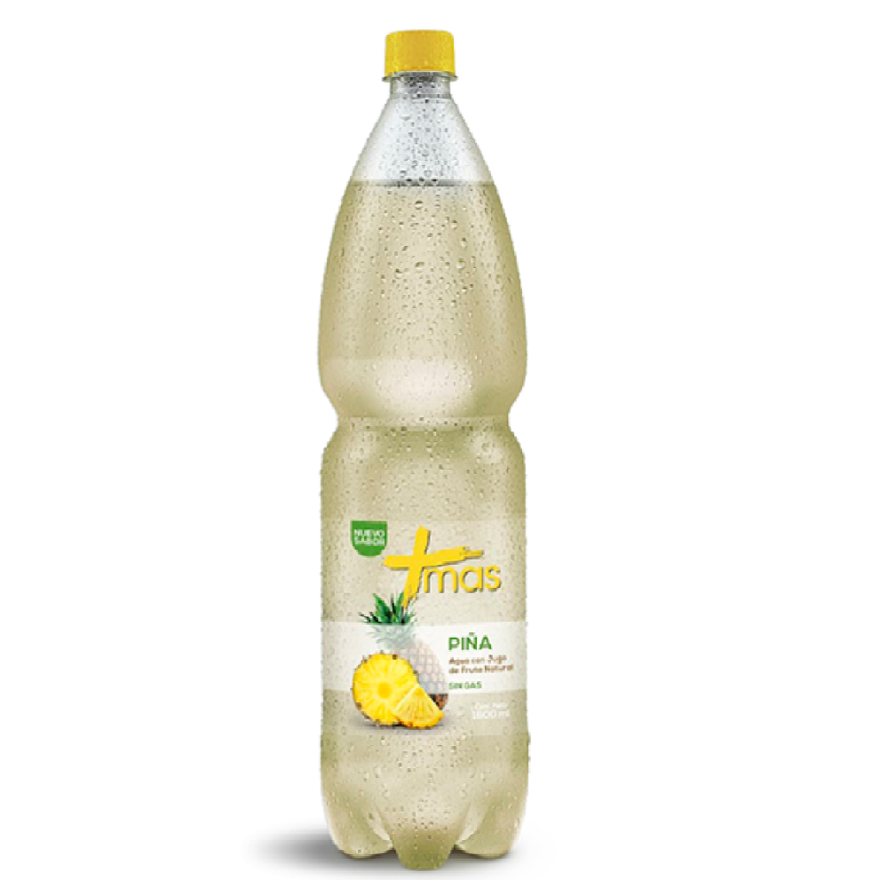 AGUA +MAS PIÑA 1.6 L es una agua saborizada sin gas con sabor a piña de la línea “Más” de Cachantún.